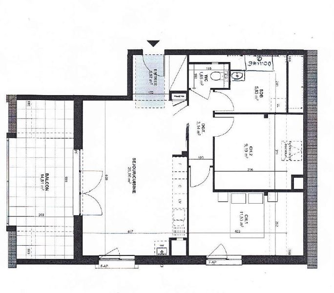 Situé dans une copropriété de 4 immeubles, au 2ème et dernier étage sans ascenseur, ce 3 pièces et de 63m2 habitable environ se compose d'une entrée, d'une cuisine aménagée équipée (four, plaque, hotte) ouverte sur la pièce de vie avec balcon, de deux chambres, d'une salle d'eau et de WC séparé.