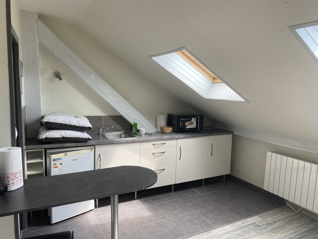 D'une surface de 15.13m2 carrez, ce studio se compose d'une cuisine aménagée équipée (plaque 2 feux, frigo top) ouverte sur la pièce de vie, d'une salle d'eau avec WC, ce studio se situe au 4ème étage sans ascenseur.